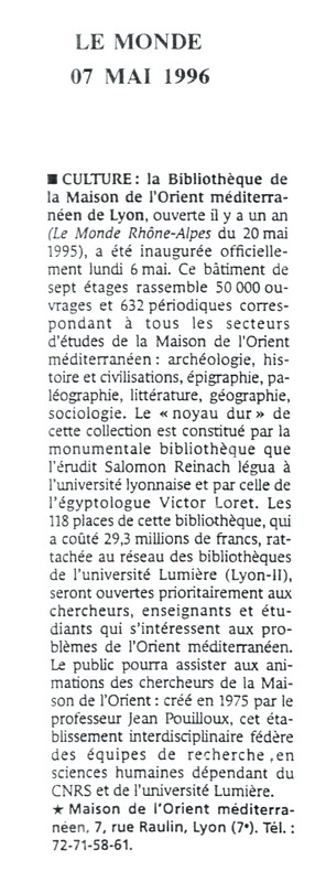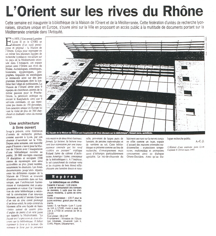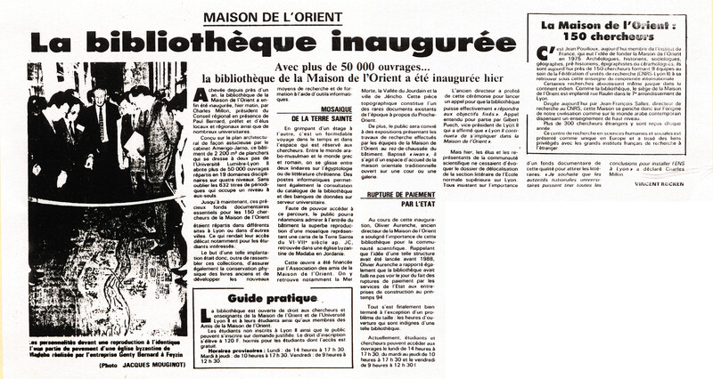 Le bâtiment fut terminé en 1995 sous le mandat directorial de Jean-François Salles. La cérémonie d'inauguration s'est déroulée le 6 mai 1996 en présence de : Charles Millon, président du conseil régional Rhône-Alpes ; Paul Bernard, préfet de la région Rhône-Alpes ; Daniel Bancel, recteur de l'Académie de Lyon, chancelier des Universités ; Michel Thiers, vice-président du conseil Général du Rhône ; Christian Philip, premier adjoint au maire de Lyon.